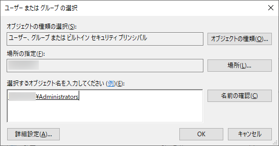 - 先ほどのアクセス許可のダイアログが開いており、「Administrators」を選択後、
