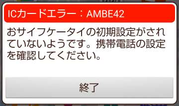 新しいおサイフケータイでは必ず出てくるAMBE42という必ず一度は怒られる画面です。