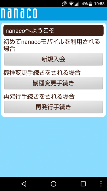 新しいスマホにてnanacoアプリをダウンロードしインストール。当たり前ですが、おサイフケータイ対応機でないとダメです。