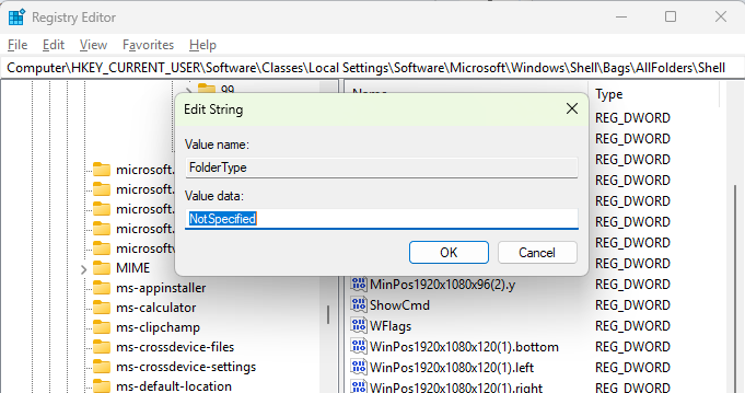 HKEY_CURRENT_USER\SOFTWARE\Classes\Local Settings\Software\Microsoft\Windows\Shell\Bags\AllFolders\Shell