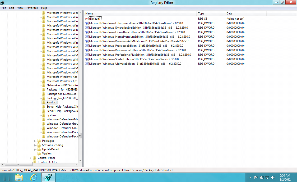 HKEY_LOCAL_MACHINE\Software\Microsoft\Windows\CurrentVersion\Component Based Servicing\PackageIndex\Product